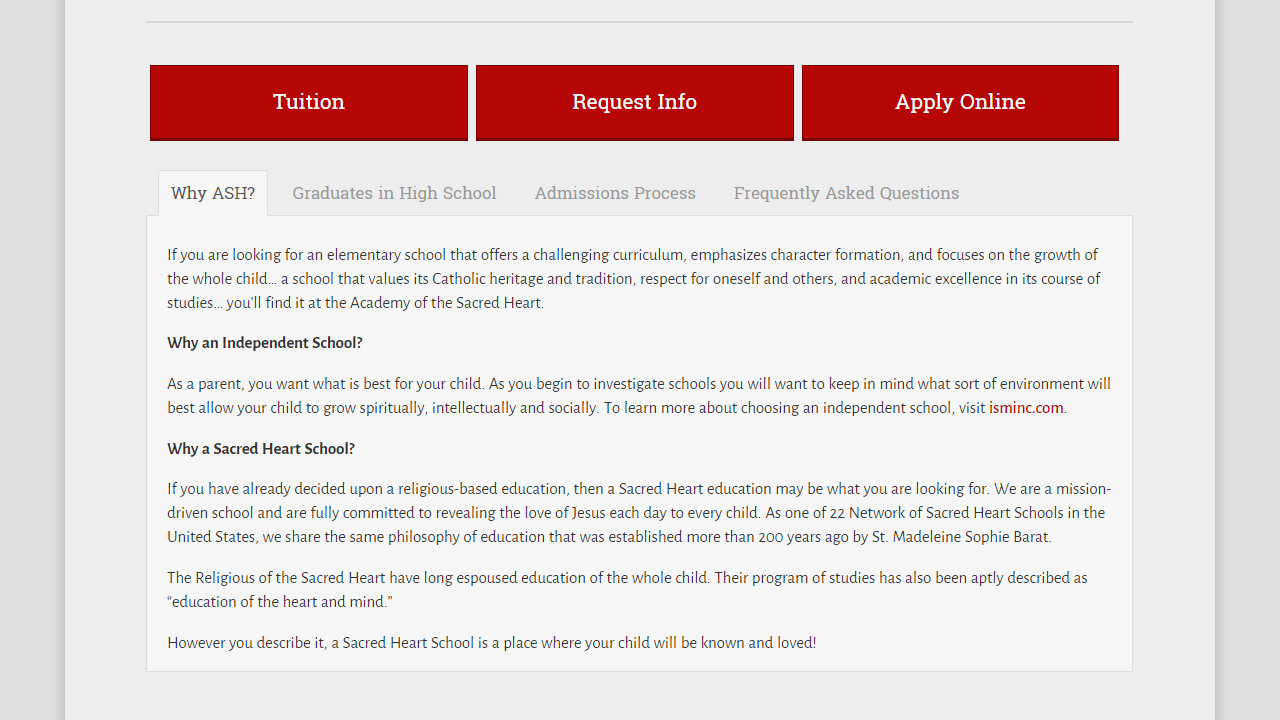 [2014 Legacy] Official website for the The Academy of the Sacred Heart, an independent, private, Catholic elementary school in St. Charles, Missouri.